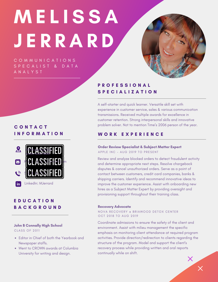 While I work full time as a Fraud Analyst for one of the worlds leading tech brands and double as a full time mom - I love spending my additional hours utilizing my creative design and writing skills in a professionally productive manner.